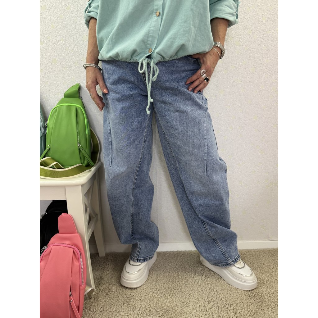 Volný střih, kapsa na prsou, rolovací rukávy, v pase na stáhnutí.