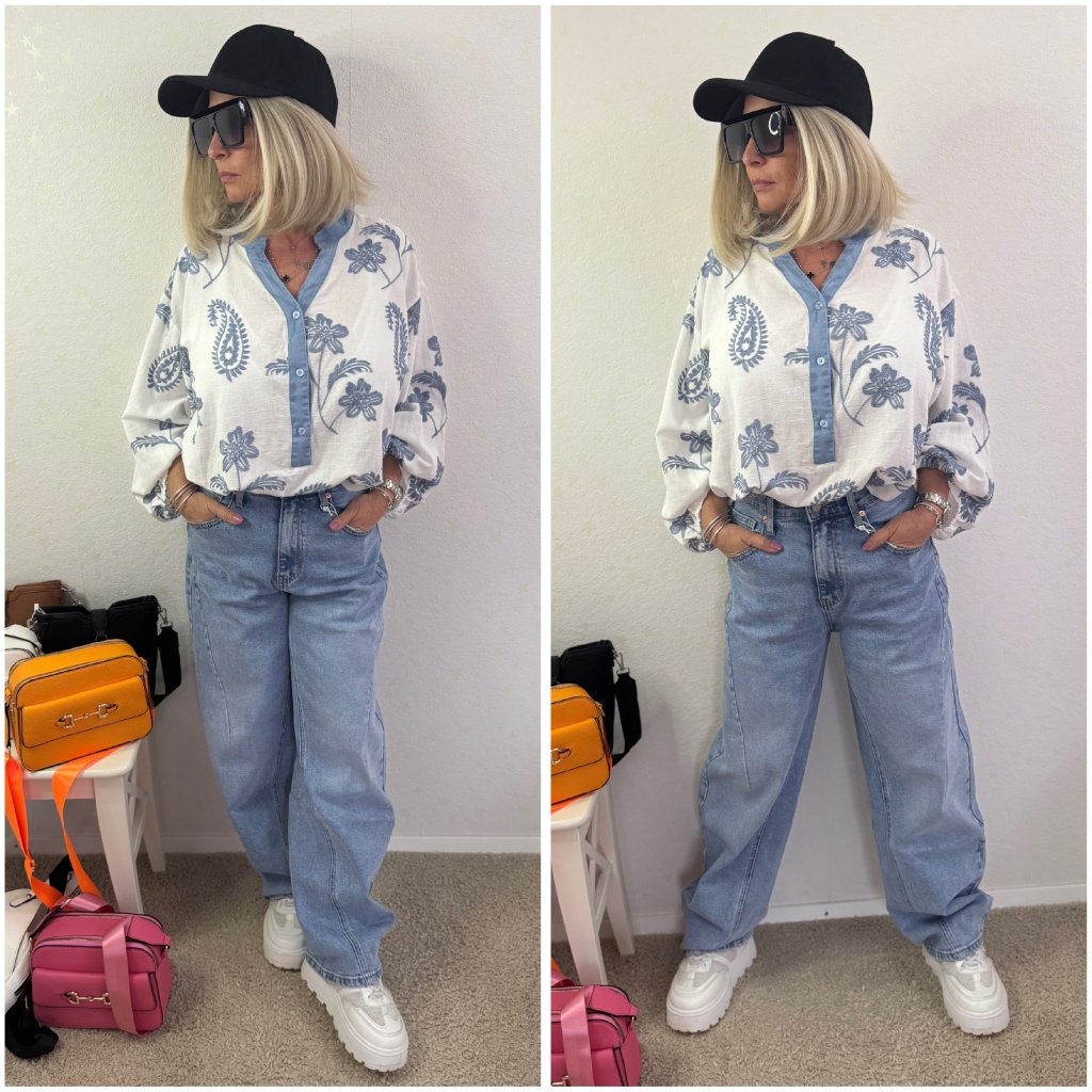 Bavlněný vyšívaný košilový top.