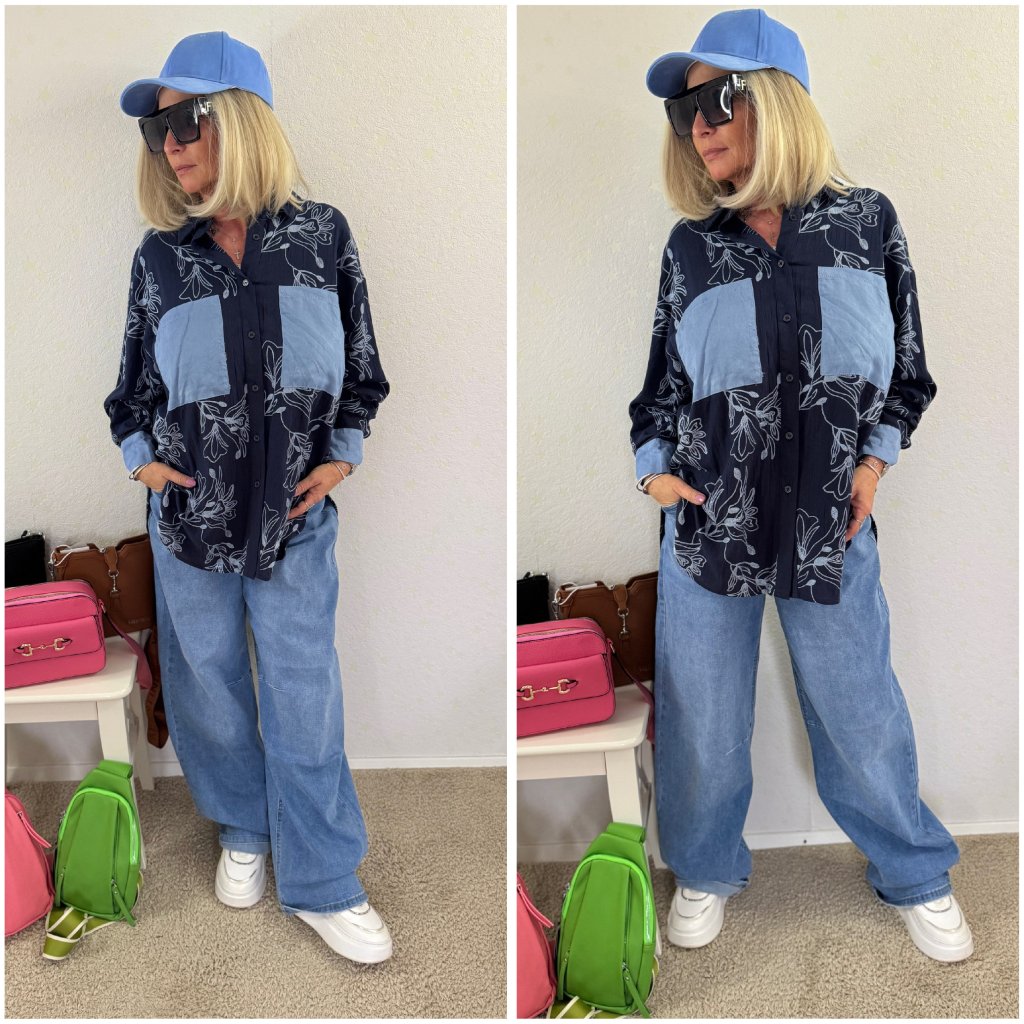 Bavlněný košilový top vyšívaný CCG PERFECT modrý