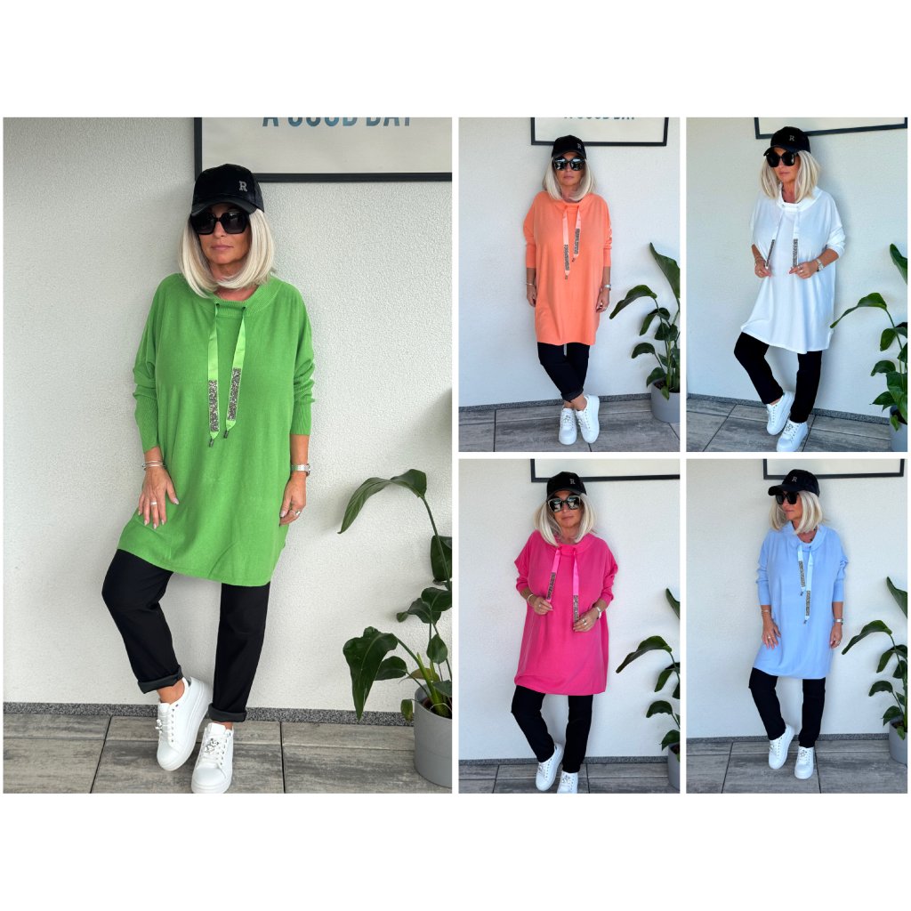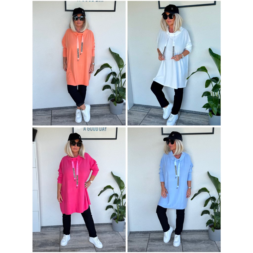 Skvěle vypadají v kombinaci s úzkými kalhotami nebo legínami, hodí se do práce i na volný čas. Vyberte si z několika krásných barev: jemná oranžová, bílá, výrazná růžová nebo světle modrá.
