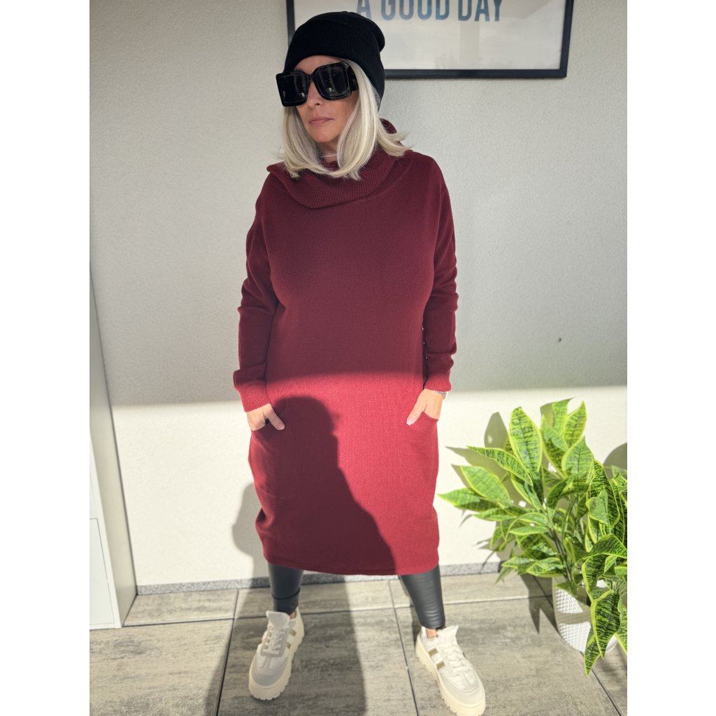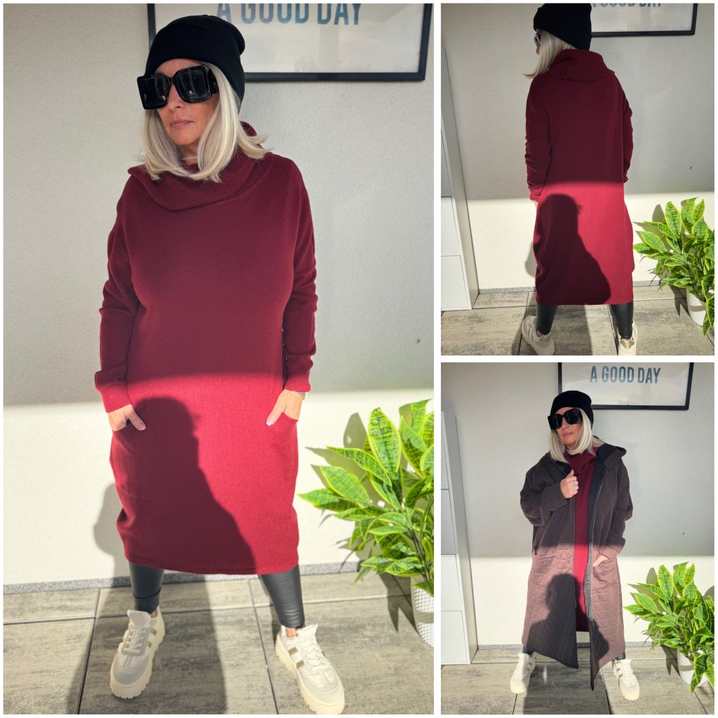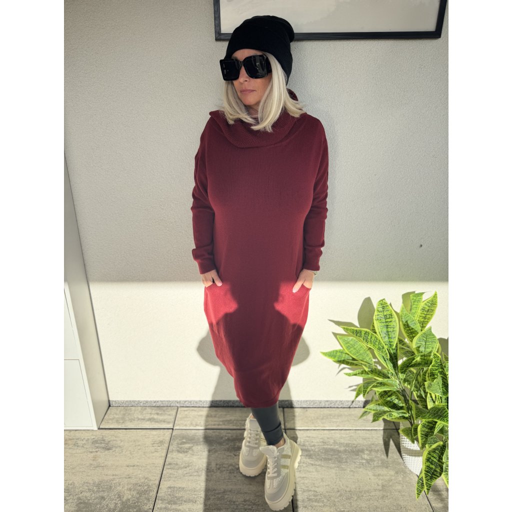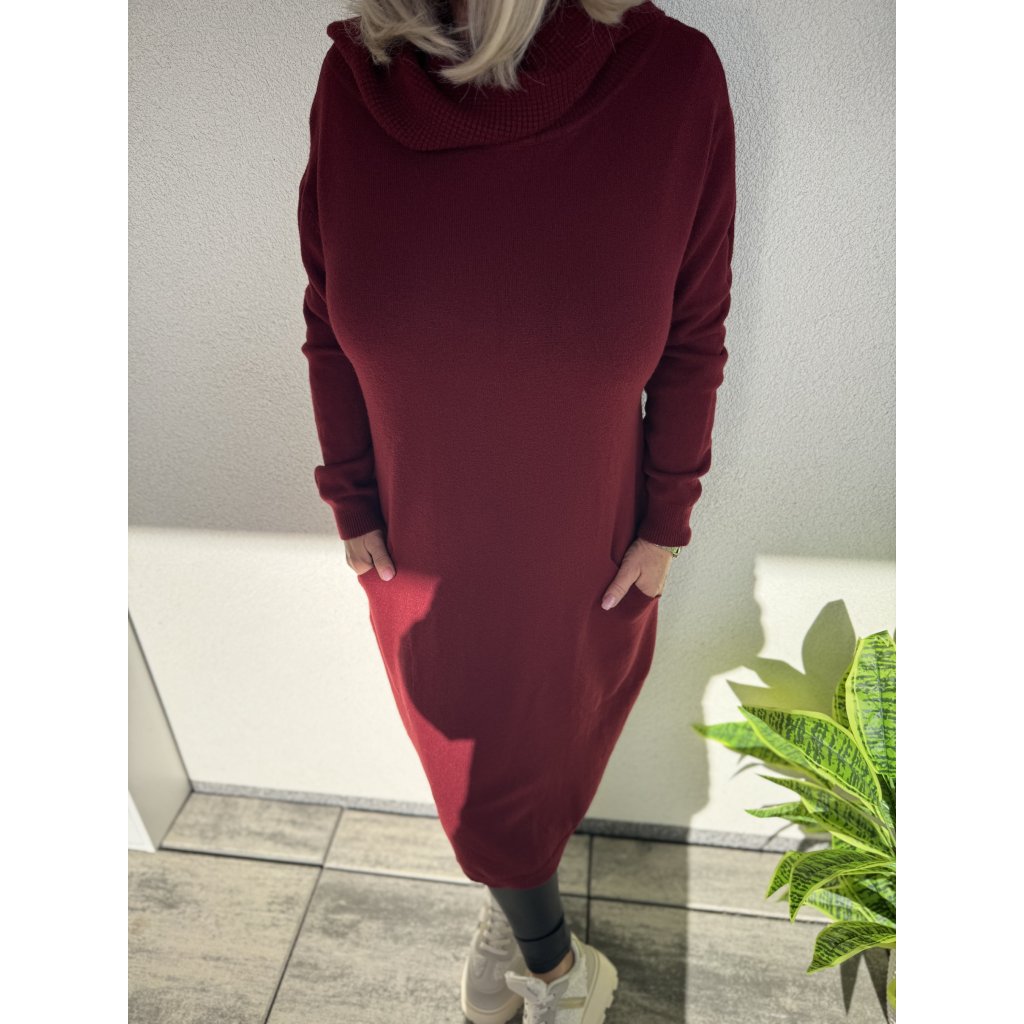 Tyto dlouhé rolákové šaty kombinují měkký materiál, moderní jednoduchý střih a praktické kapsy.