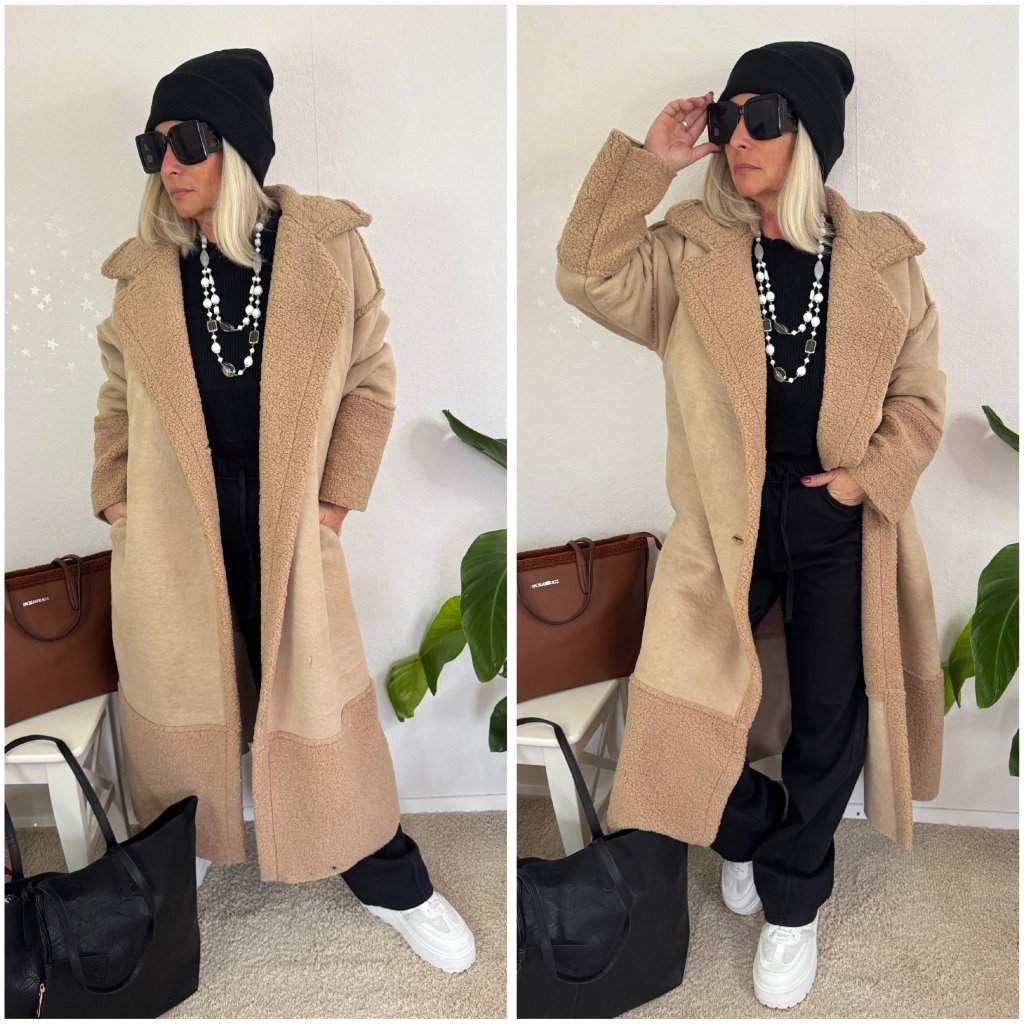 Extra dlouhý kabát LUXURY TEDDY hnědý