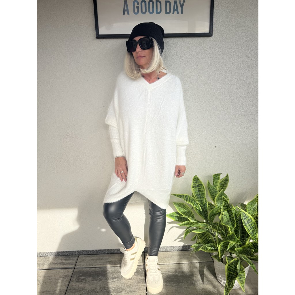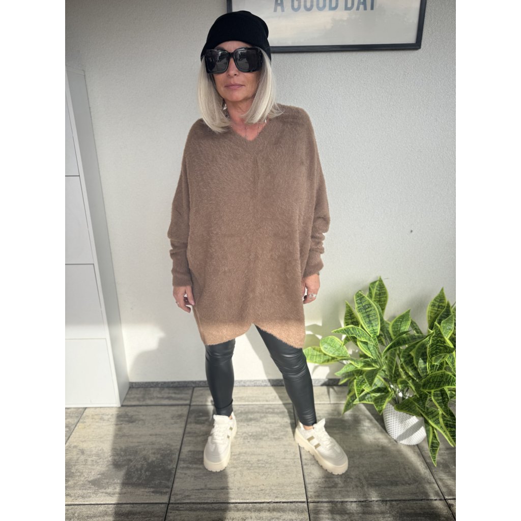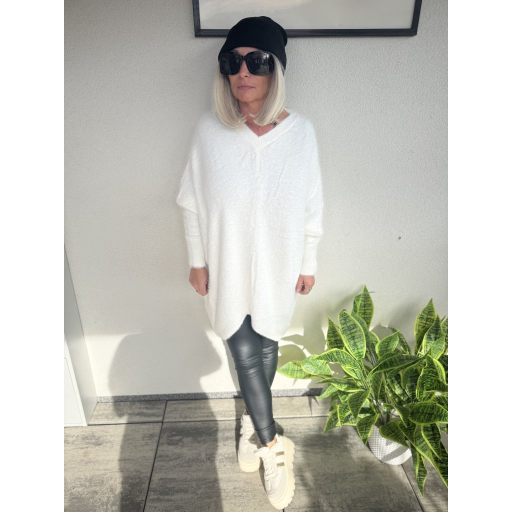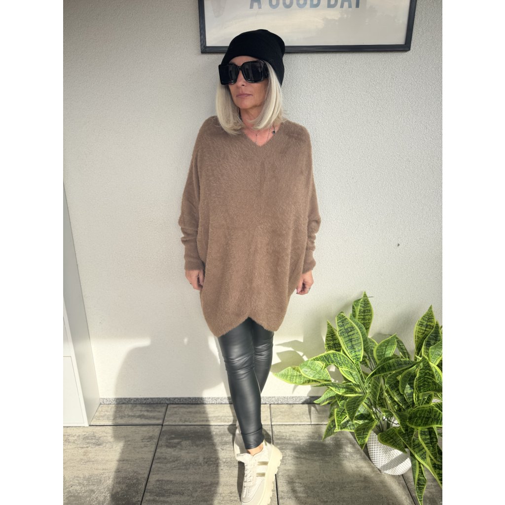 Extra příjemný svetr s výstříhem styl ALPAKA EVERY DAY