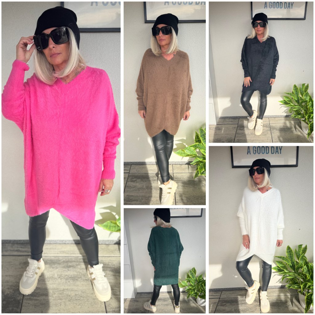 Svetry styl alpaka s V výstřihem – měkkost, styl a prodloužený střih