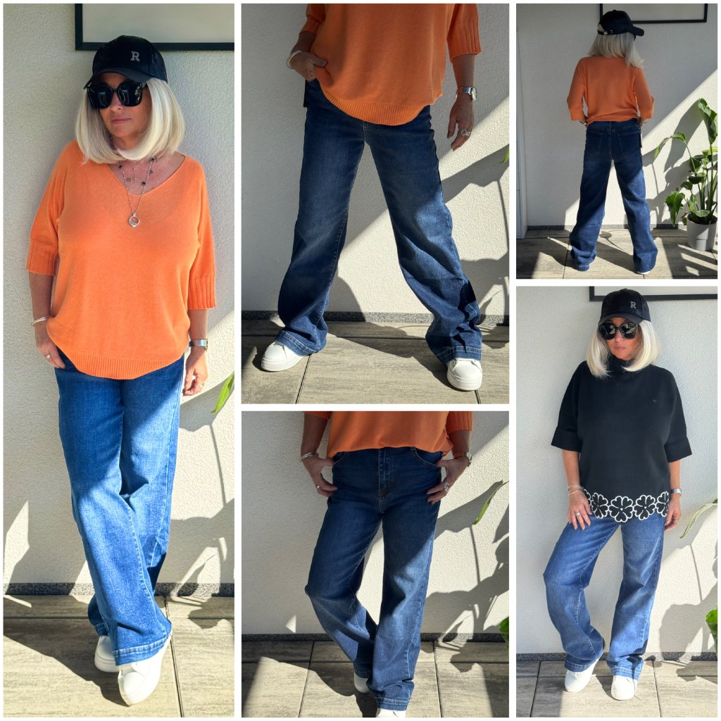 Univerzální džínovina se jednoduše kombinuje s barevnými svetry i elegantními topy.