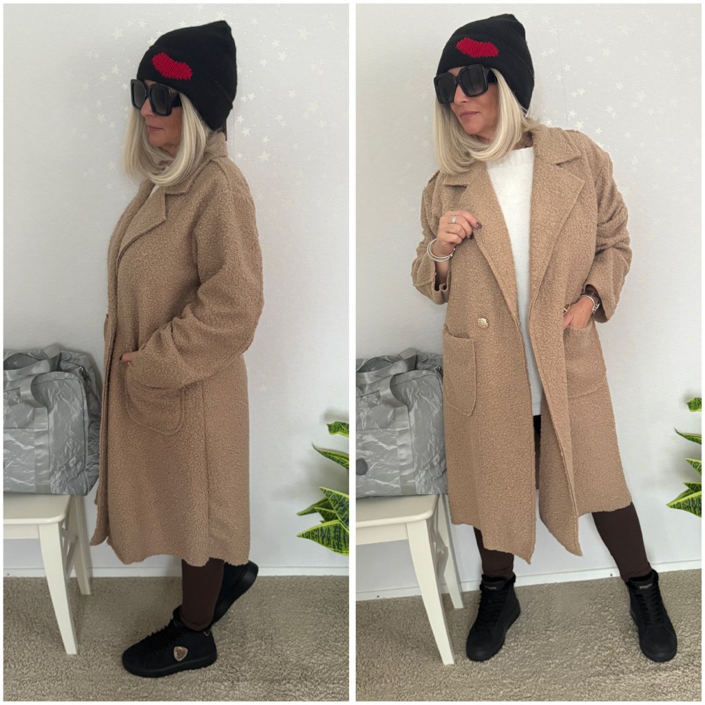 Kvalitní teddy látka skvěle padne k legínám, džínám pro městský styl.