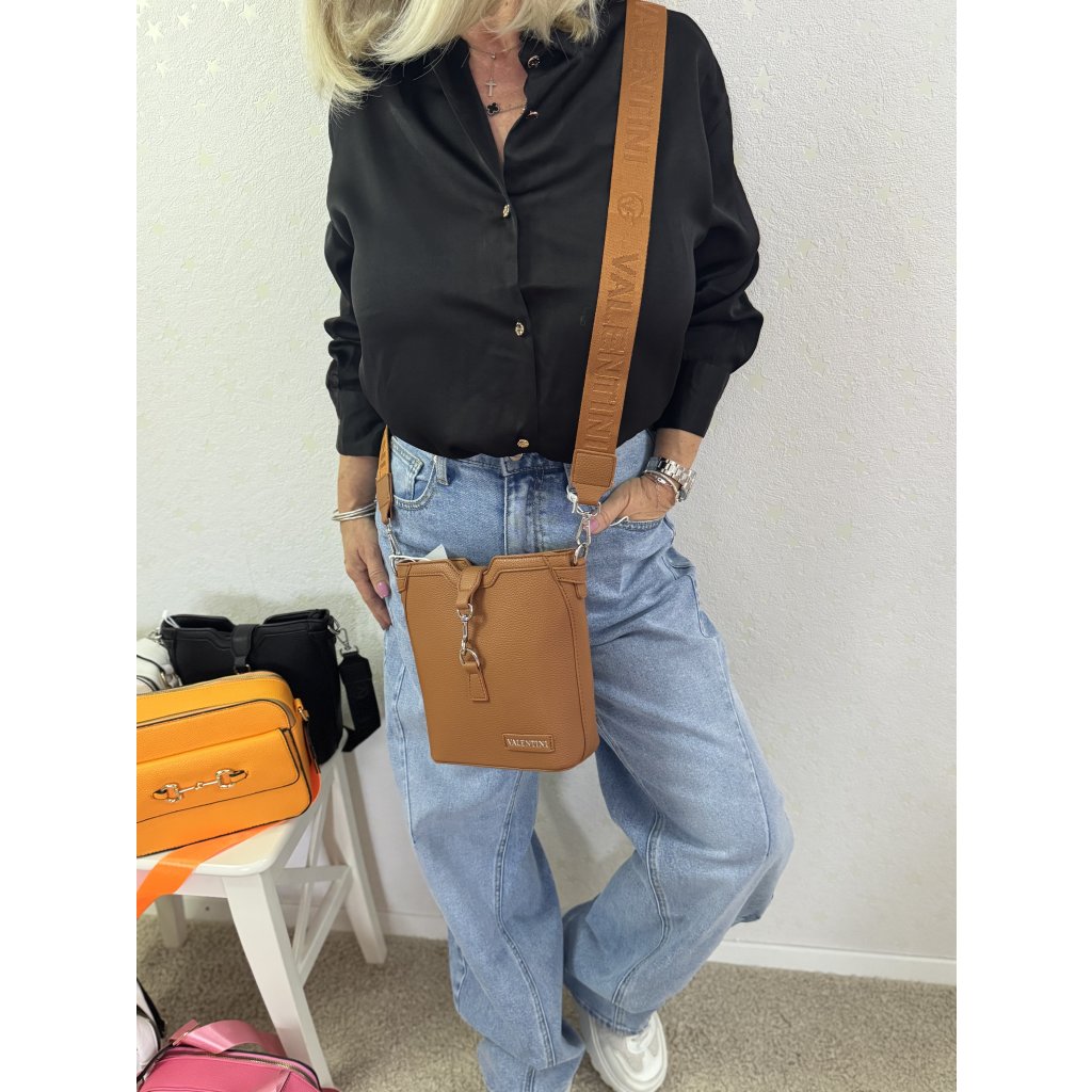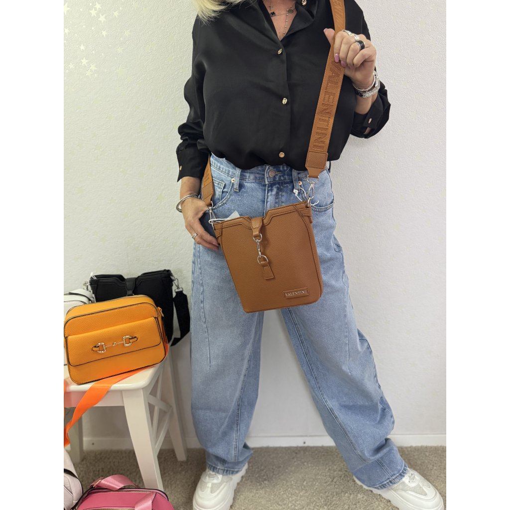 S kováním, nastavitelný široký popruh s logem (černý / hnědý), zip a dostatek místa na telefon, klíče, karty i rtěnku.
