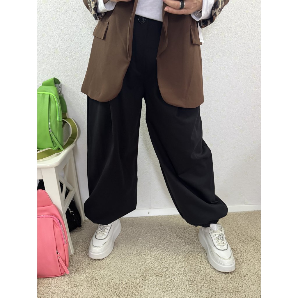 Volnější nohavice, zakončeny na gumu a pohodlný pas zajistí komfort na celý den, přitom kalhoty vypadají skvěle jak se základním topem, svetříkem nebo i sakem.