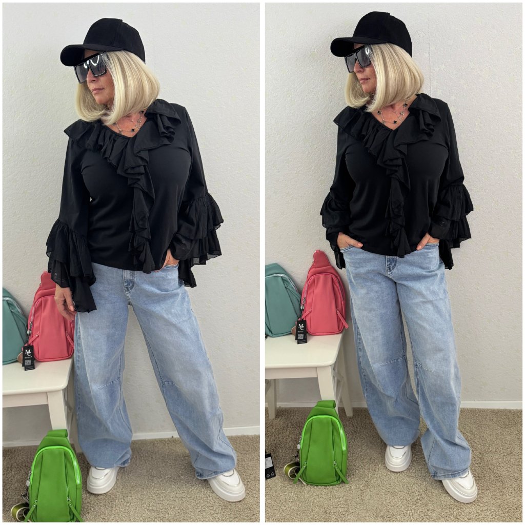 Nové tuniky, které ukradnou srdce na první pohled: ultra ženské, splývavé a pohodlné tuniky s bohatými volánky na V- výstřihu a dramatickými balonovými rukávy s kaskádou volánů na koncích.