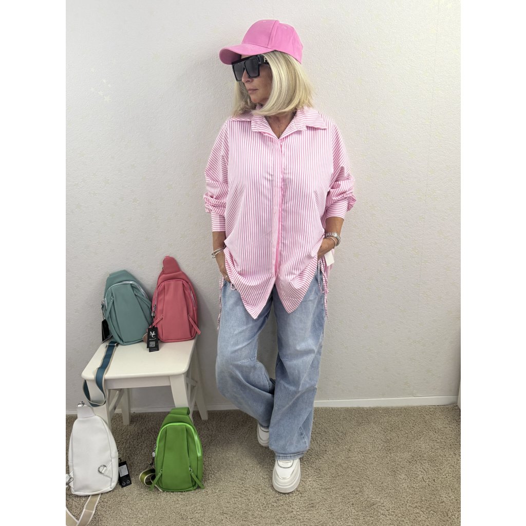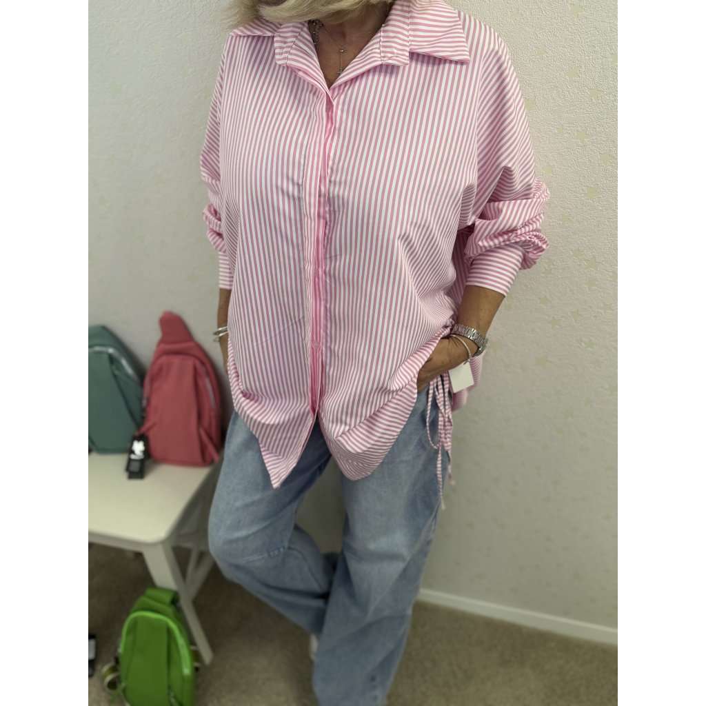 Proužkovaná oversize košile – růžový pruhovaný hit sezóny!
