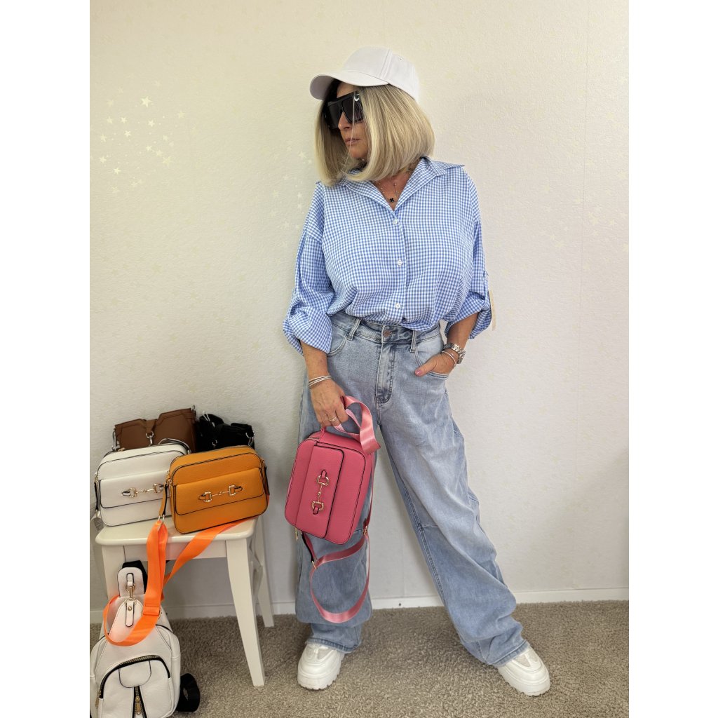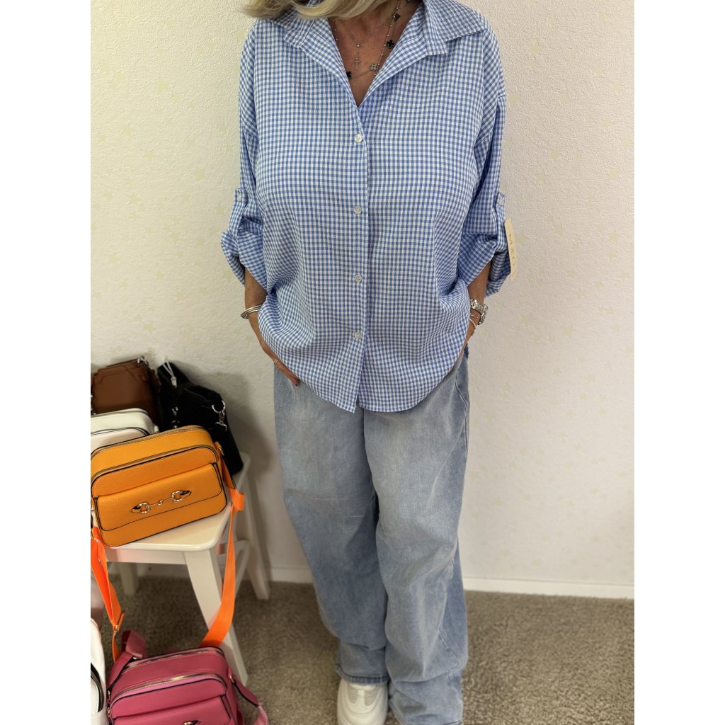 Lehká oversize košile v klasickém gingham vzoru (modrá / růžová) – tvůj nový go-to kousek na jaro a léto!