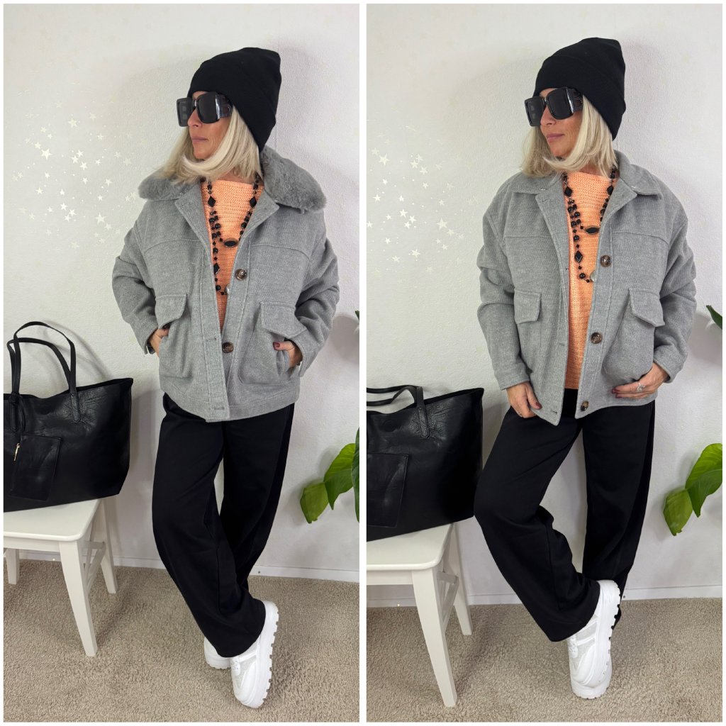 Kratší podšitý kabátek s odnímatelnou kožešinou STELLAR šedý