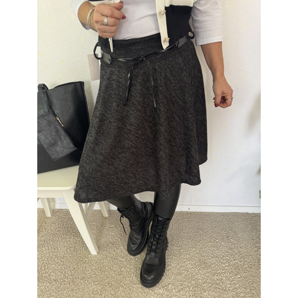 Trendová áčková sukně v šedé barvě s jemným vzorem je skvělý kousek do vašeho šatníku na podzim i zimu.
