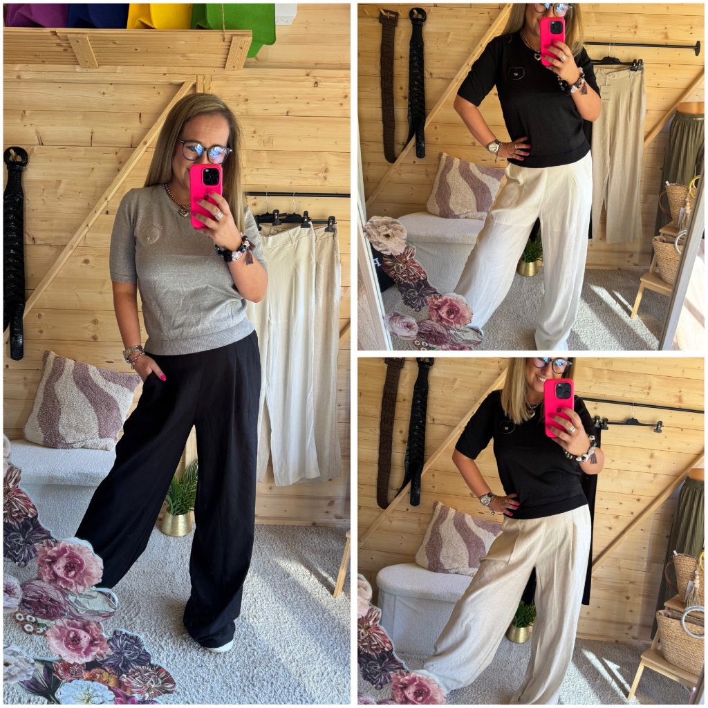 Skvěle padnoucí střih s vyšším pasem zvýrazní vaši siluetu a široké nohavice zaručí volnost pohybu po celý den.