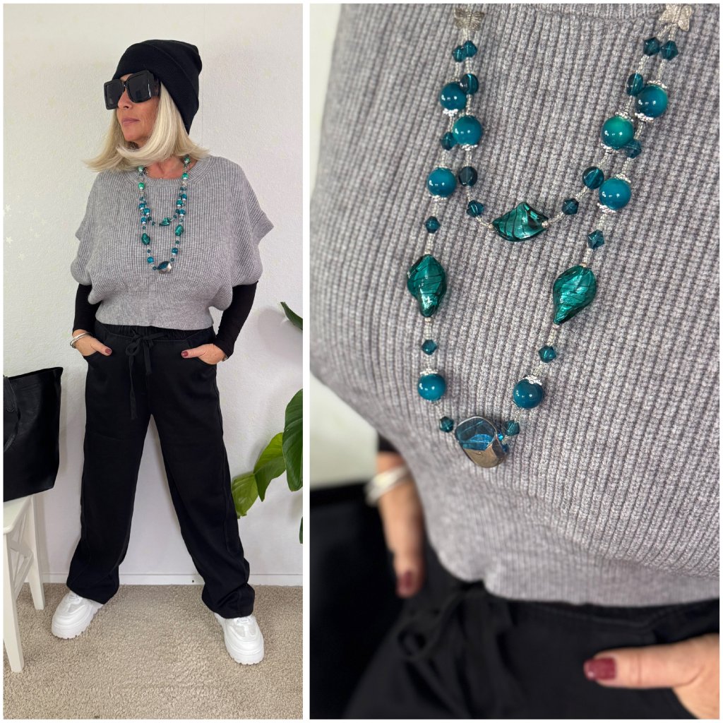 Je ručně vyrobený z různých druhů korálků a ozdobných komponentů, barevně sladíte s vaším oblíbeným svetříkem či halenku.