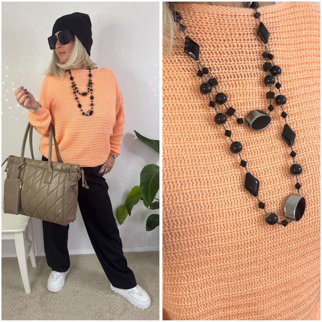 Je ručně vyrobený z různých druhů korálků a ozdobných komponentů, barevně sladíte s vaším oblíbeným svetříkem či halenku.