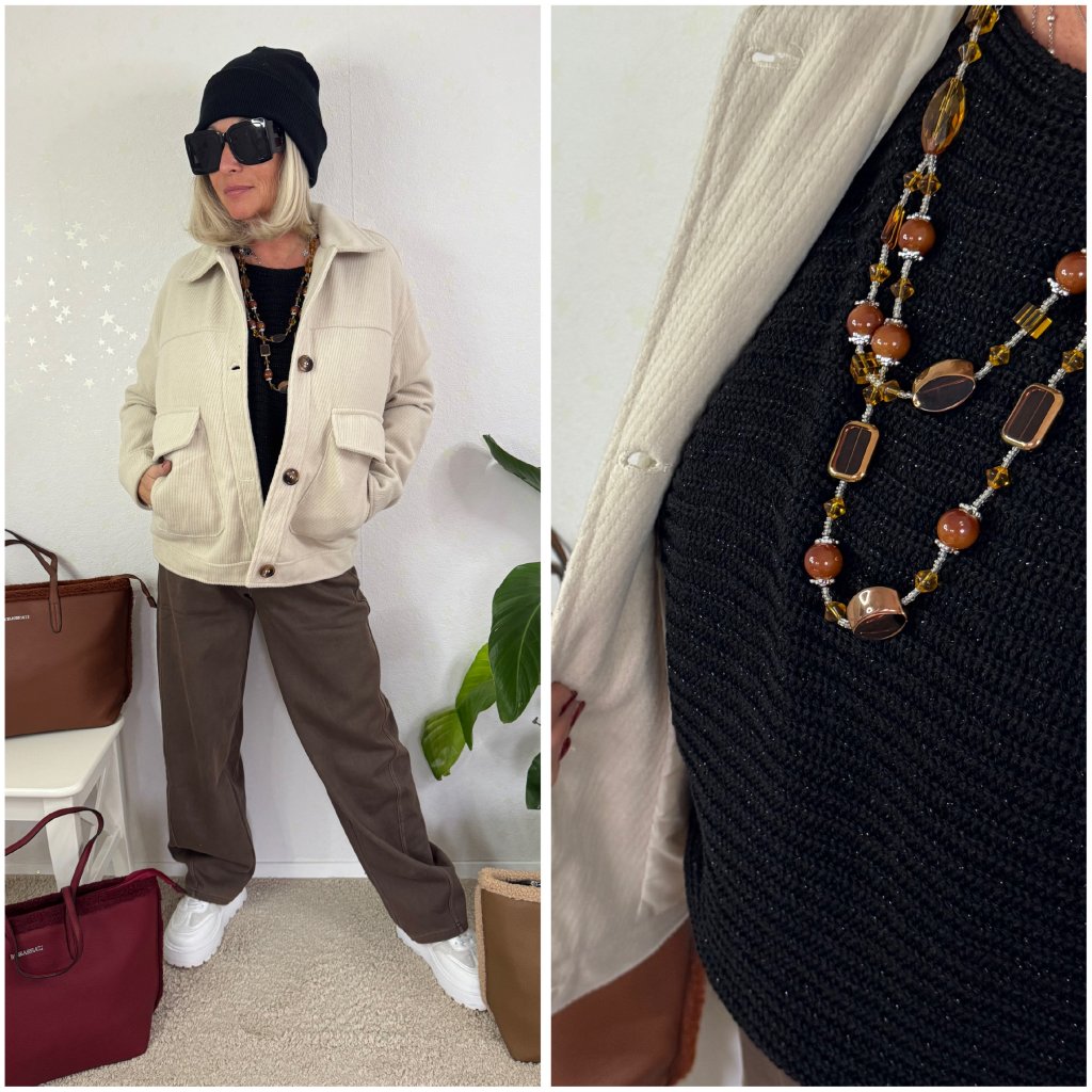 Je ručně vyrobený z různých druhů korálků a ozdobných komponentů, barevně sladíte s vaším oblíbeným svetříkem či halenku.