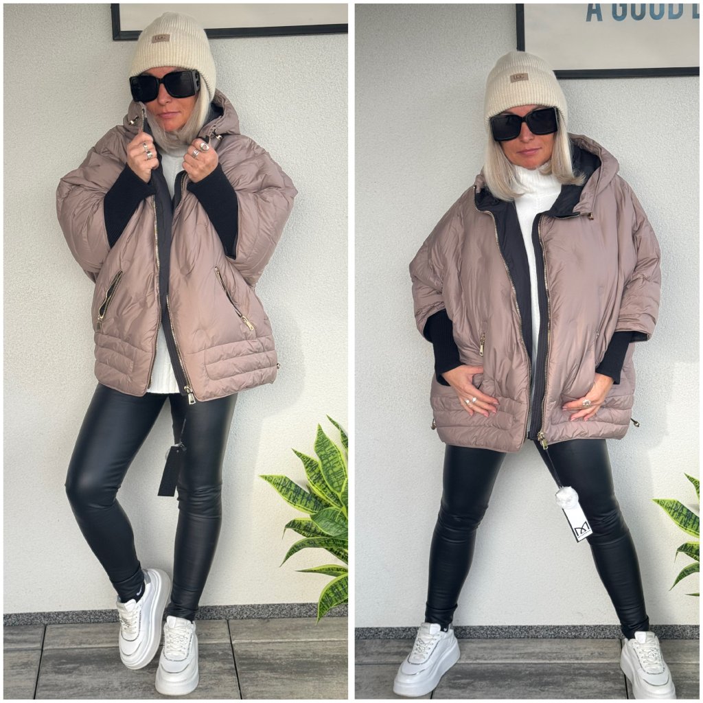Oversize střih, hřejivá péřová výplň, extra lehká - přesto velmi teplá - praktická kapuce a zlaté zipy jsou zárukou, že budete v teple i během podzimních a zimních dnů a zároveň dokonale trendy.