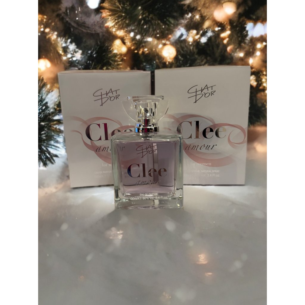 Vůně se otevírá svěžím citrusovým nádechem, pokračuje jemnými květinovými tóny jasmínu, růže a pomerančového květu s ovocným akcentem. Základ tvoří hřejivé a smyslné kombinace pižma, cedru, vanilky a pačuli. Celkově je Clee Amour květinově-svěží, moderní a romantická.