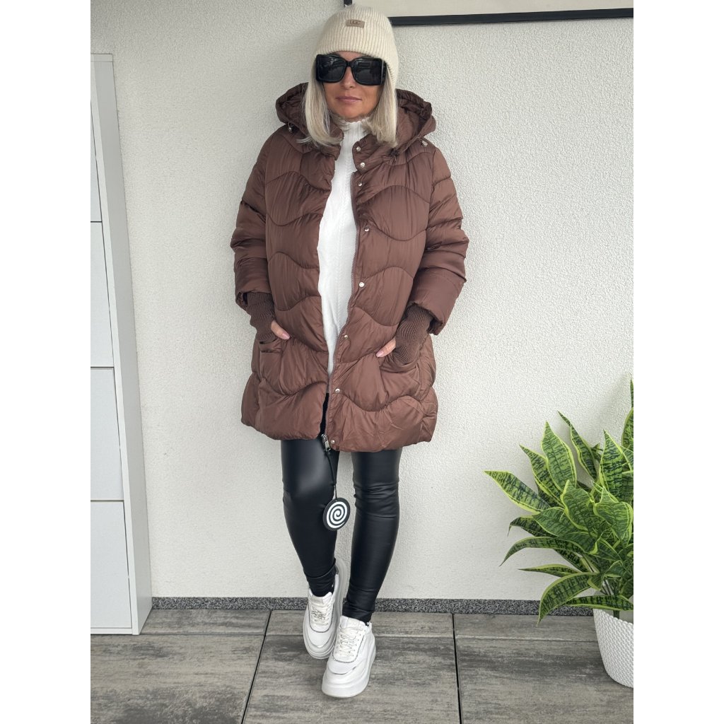 Trendy delší střih, kapuce a prošívání zajistí maximální komfort i v chladných dnech, zatímco originální design v přírodní barvě snadno sladíte se zbytkem šatníku.