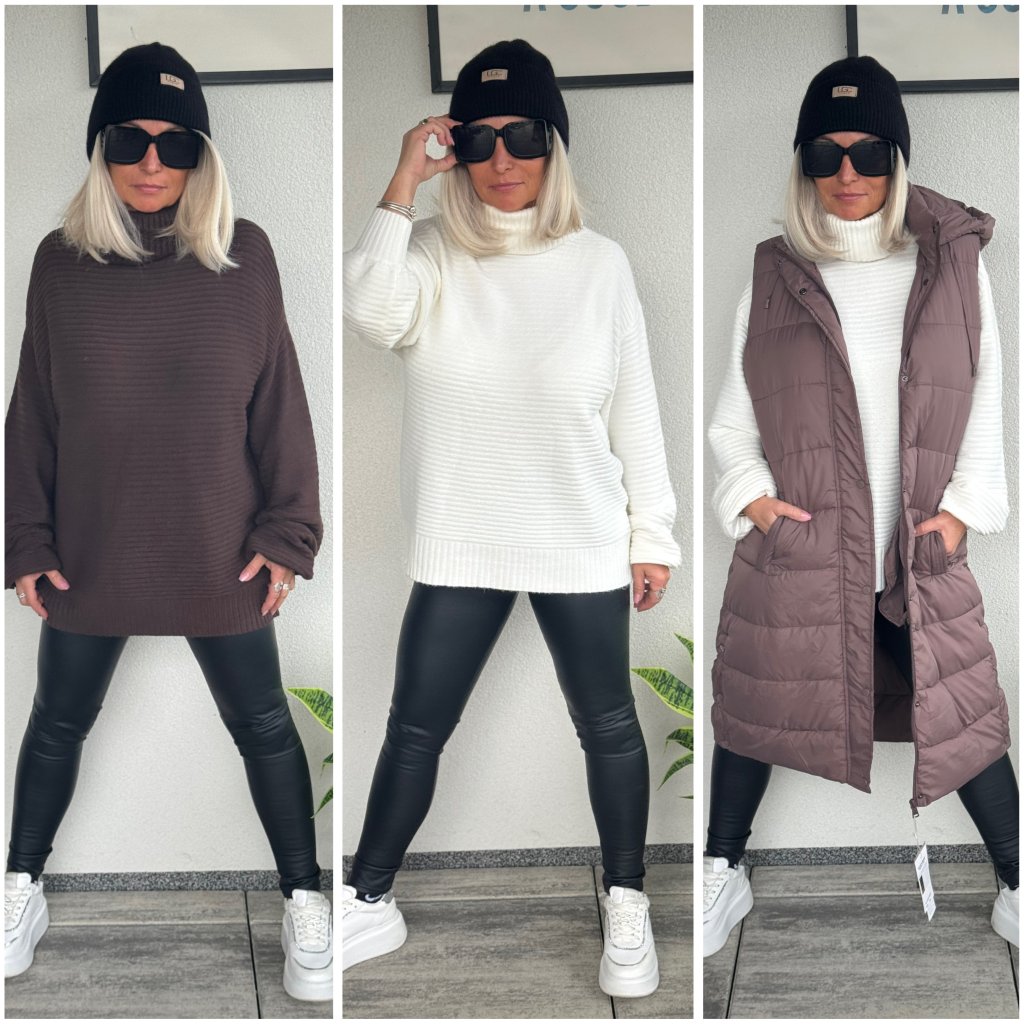 Měkký, pohodlný a dostatečně hřejivý svetr s vyšším límcem ochrání před chladem a zároveň vypadá stylově v každé situaci – ke kalhotám, legínám i pod vestičku.