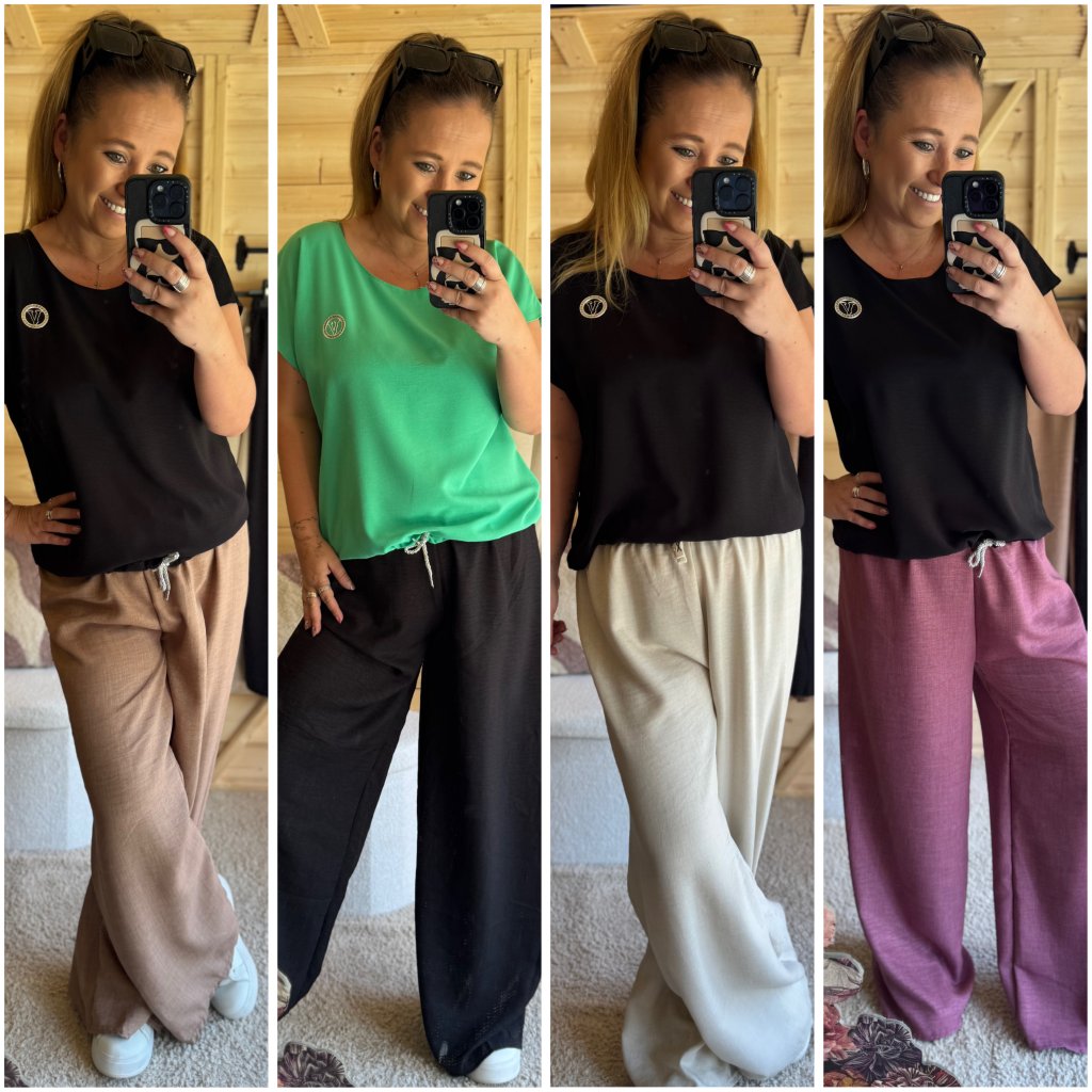 Úžasné volnočasové kalhoty s pasem na gumu a šňůrku.