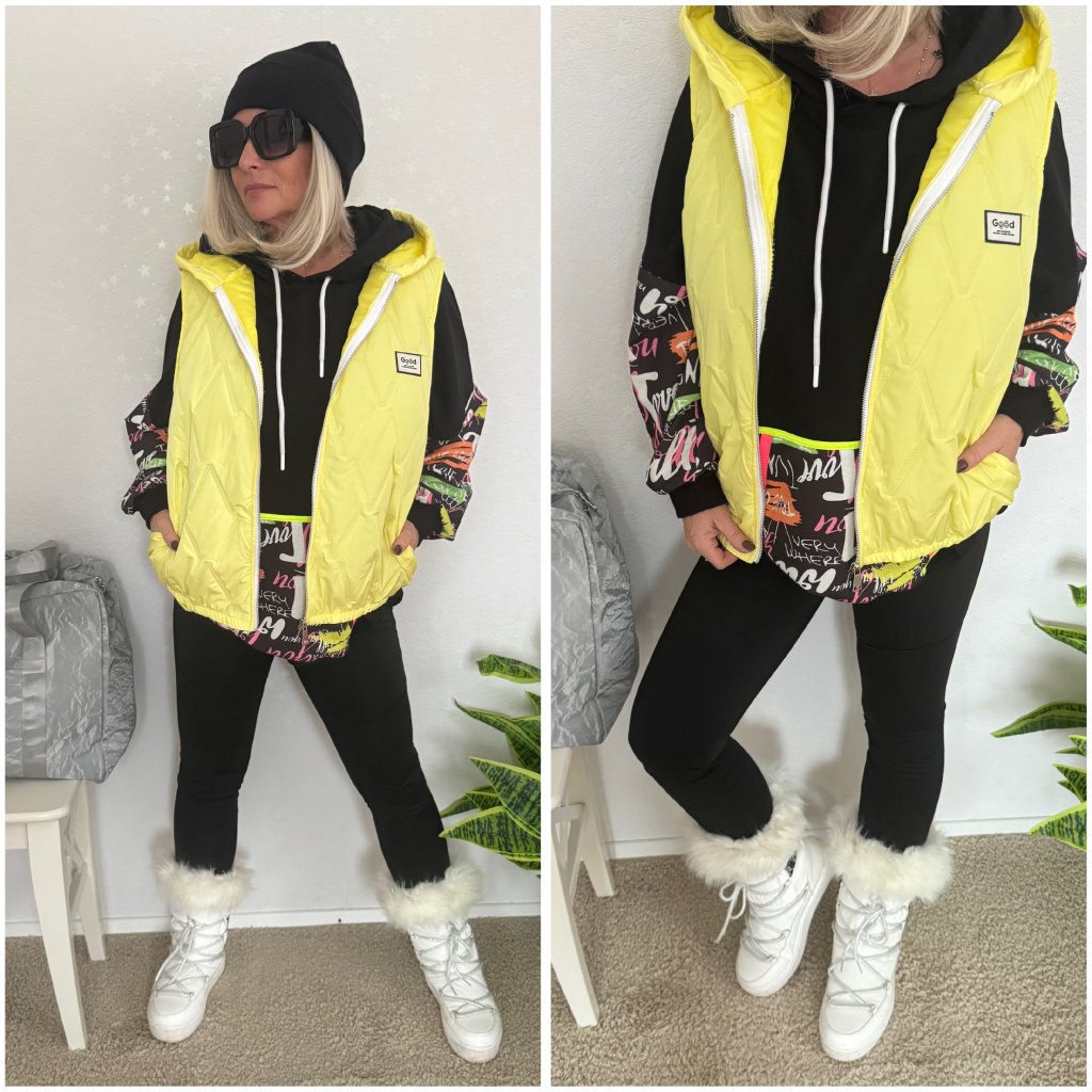 Dámské prošívané vesty s kapucí na zip nabízejí ochranu proti větru a chladu díky syntetické výplni, boční kapsy a kontrastní lemům.