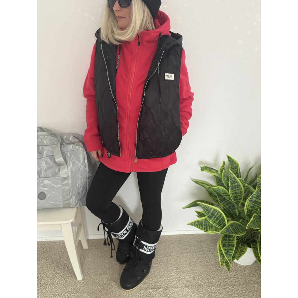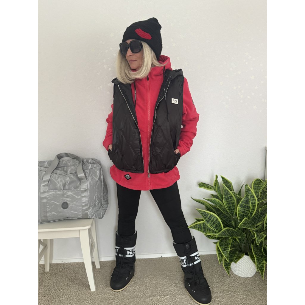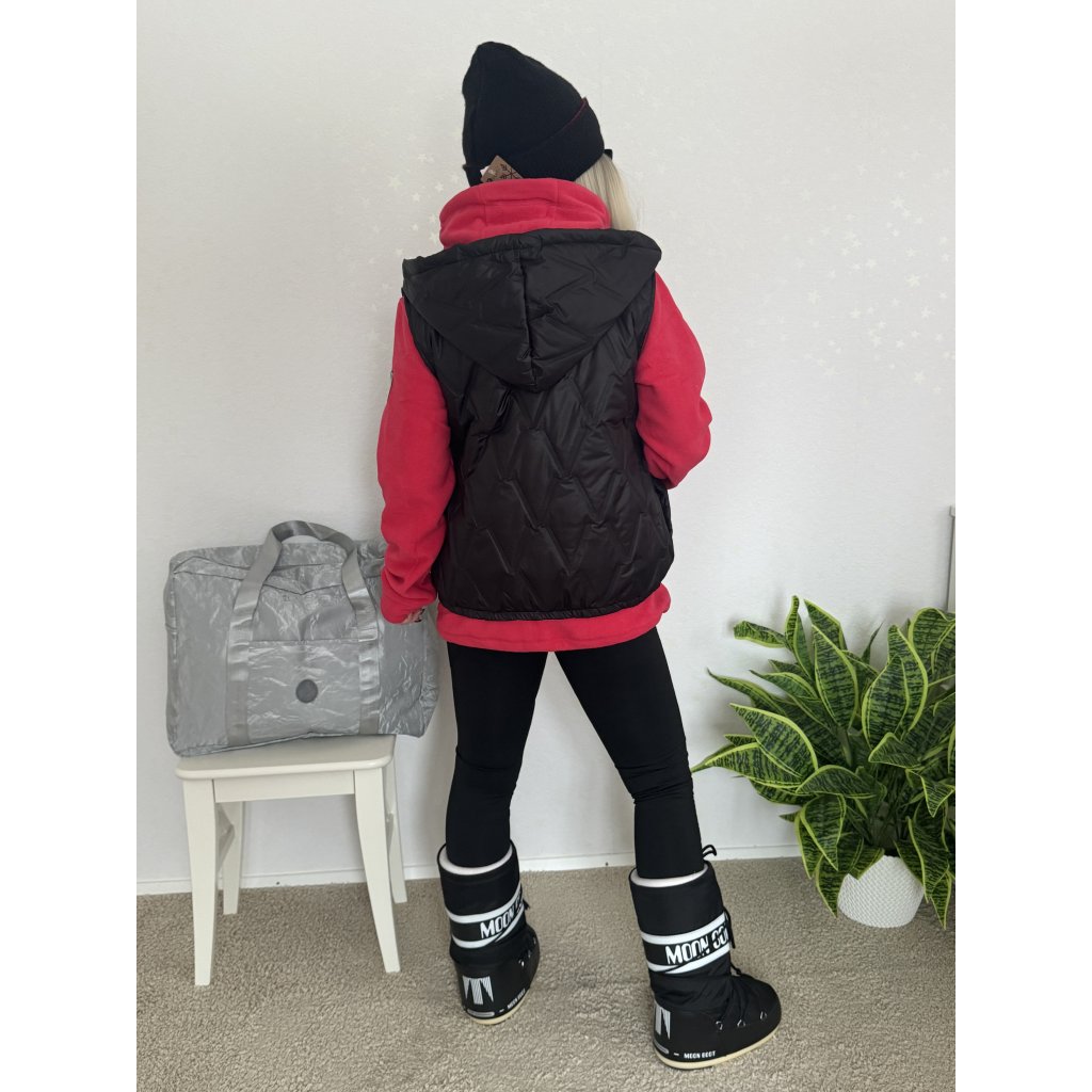Dámské prošívané vesty s kapucí na zip nabízejí ochranu proti větru a chladu díky syntetické výplni, boční kapsy a kontrastní lemům.