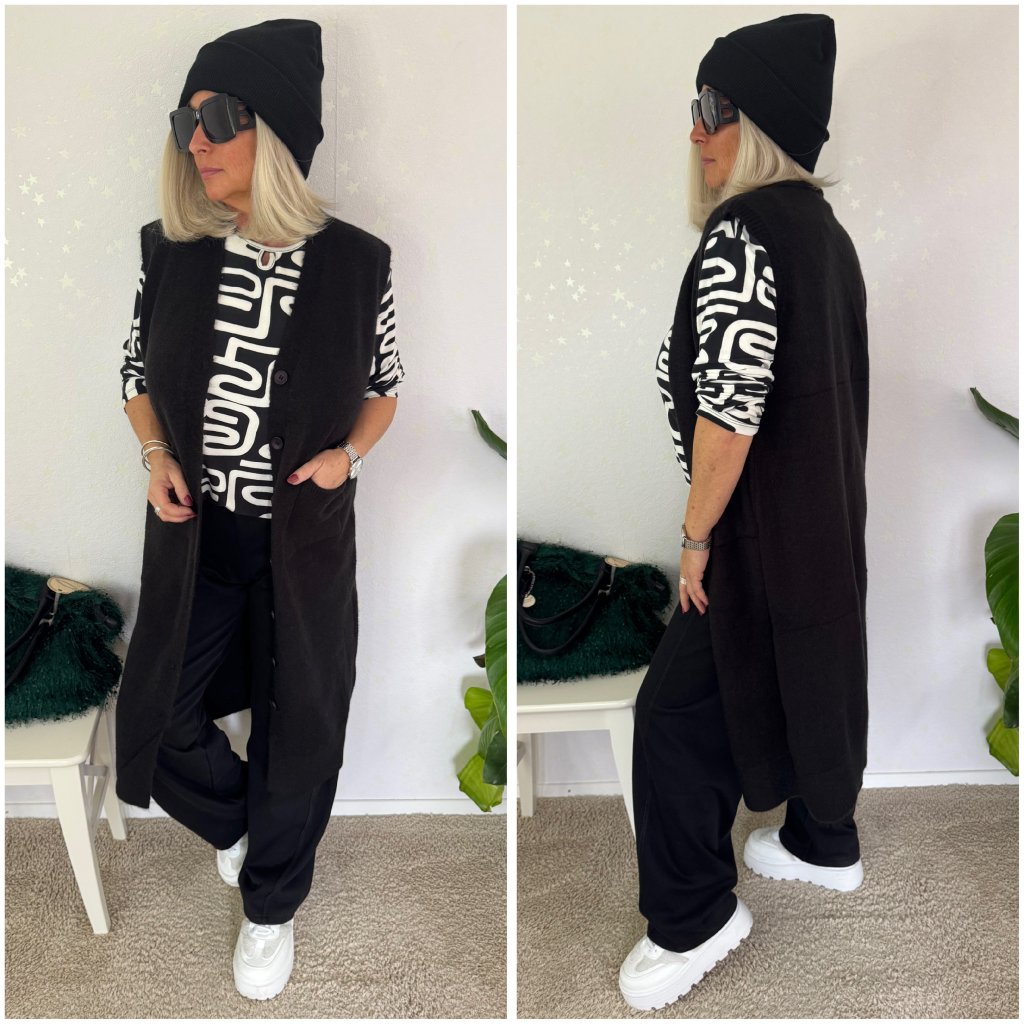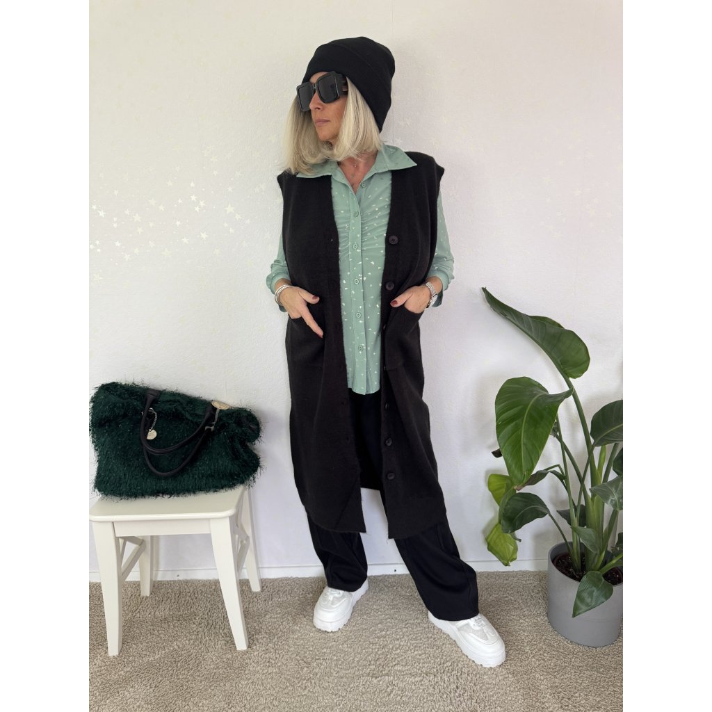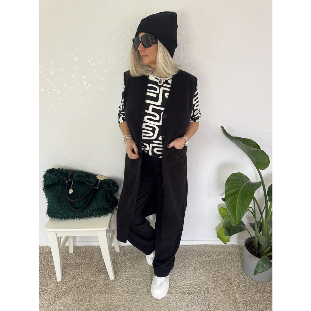 Dlouhá vesta s vlnou je stylovým a praktickým kouskem pro každodenní nošení v chladnějším období.