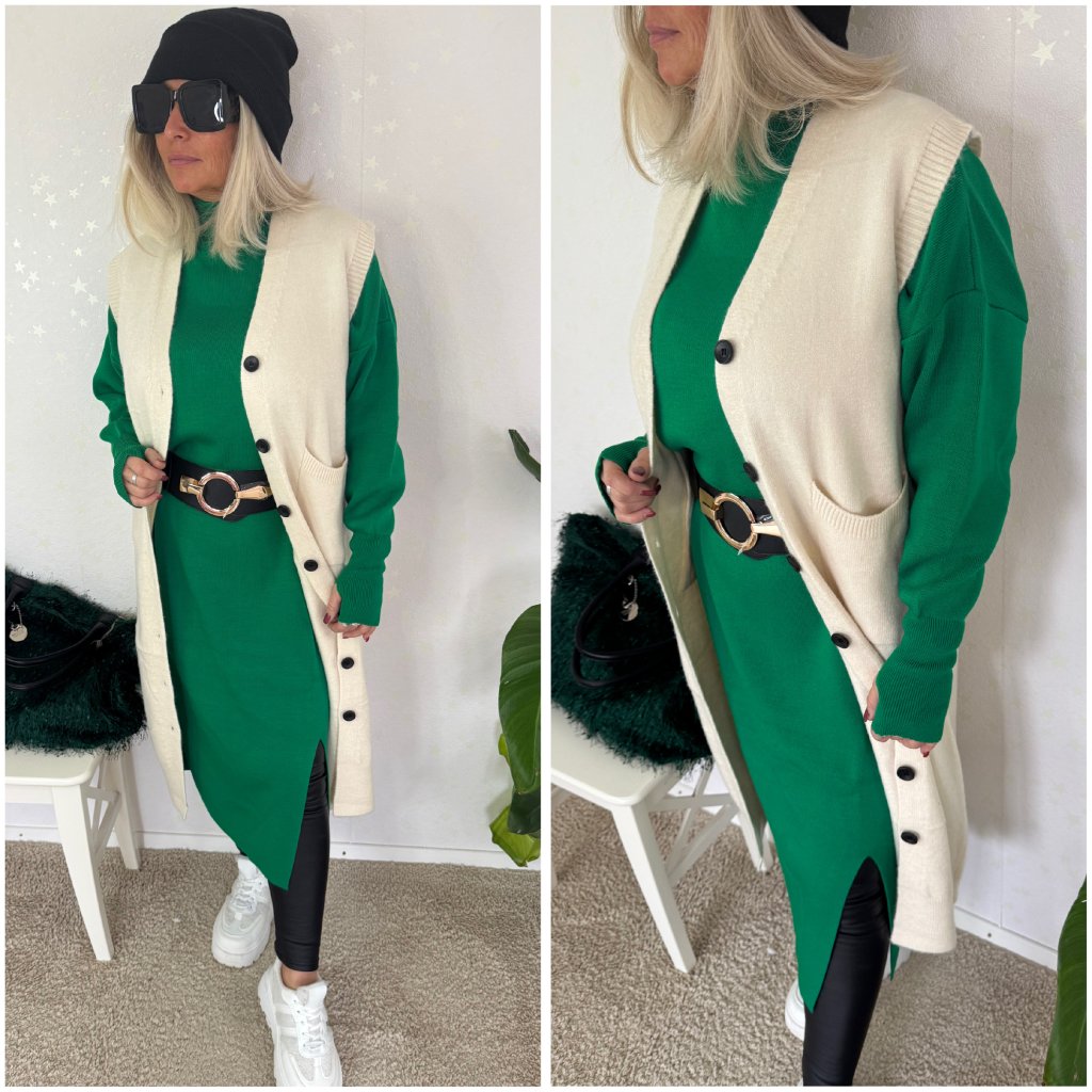Dlouhá vesta s vlnou je stylovým a praktickým kouskem pro každodenní nošení v chladnějším období.
